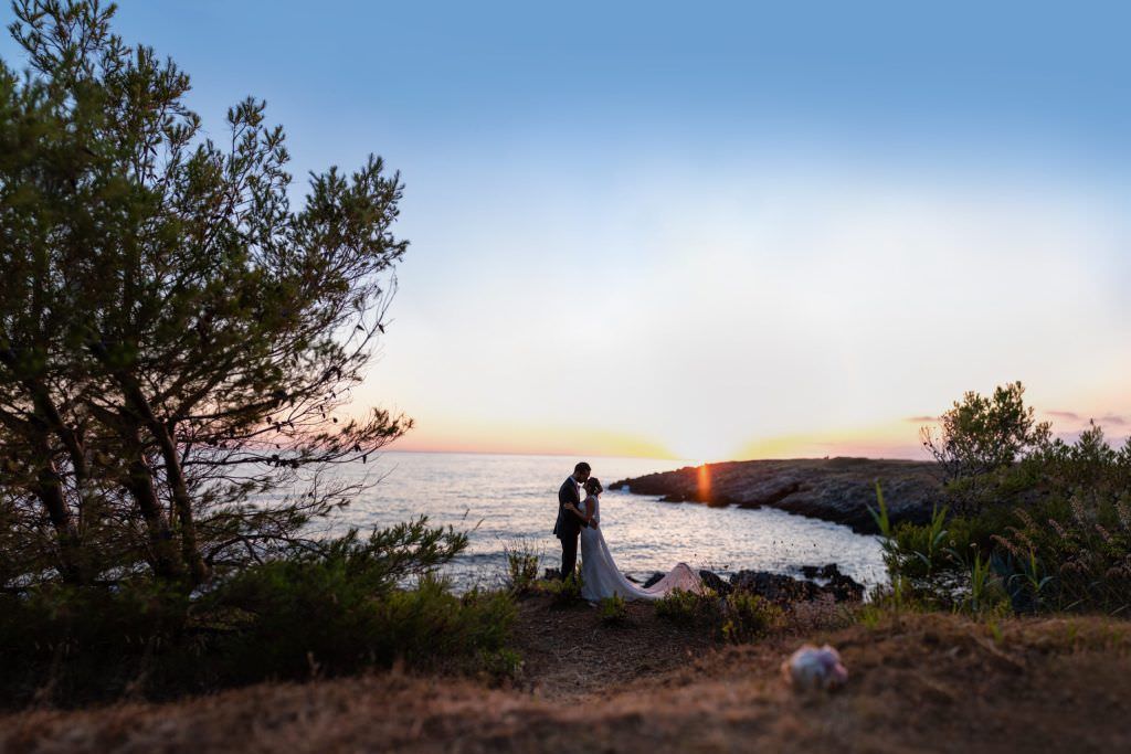 The warmth of the July sun in Calabria enveloped us in a long embrace that lasted until its sunset. I really like to be a wedding photographer expecially in sea places as the Hotel Ducale – Villa Ruggieri in Cirella. Since the ritual of the bride and groom getting ready, which took place in Cosenza in the city center, passing through the religious celebration helded at the Church of Sant’Agostino which is located next to the Museum of Bretti and Enotri in Cosenza Vecchia, until we arrived on the cliff of Punta Cirella, Giorgio and Ida made us live their romantic dream of love surrounded by their loved ones who accompanied them in this important step with a truly touching emotion and participation. Giorgio and Ida chose a very suggestive location for the celebrations: The Palazzo Ducale Villa Ruggieri in Cirella is a historic noble residence surrounded by beautiful gardens overlooking the sea in front of Cirella Island. We enjoyed a very refined dinner consumed under the starry night sky and the light of the moon that bathed the sea with its pearly reflection. A perfect day, some wonderful shots.